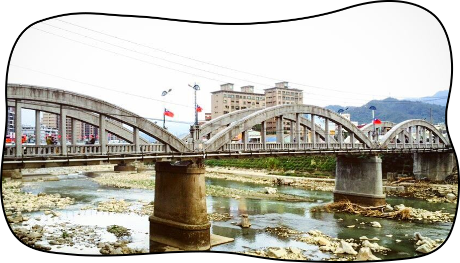 與祖師廟同為三峽特有景觀之三峽拱橋,起造於日據昭和七年(1932)十月七日,翌年(1933)六月二十八日竣工,為當時對外交通之孔道。站在拱橋上,可以看出三峽的自然環境特色,橋下是三峽非常重要的溪流三峽溪;往上游方向看,前方鳶山聳立;右邊建築物密集處為本區之街市中心。此橋以特殊的三個相連彩虹為設計理念,故亦稱虹橋。外形優雅簡鍊,為昔日三峽區主要對外聯絡道路,在水運衰落後,虹橋雖然風光不再,但風采英姿依舊,特別在夜晚燈光照射下,從遠處望去,有如三道彩虹照亮整個三峽區,散發不一樣的古樸美。